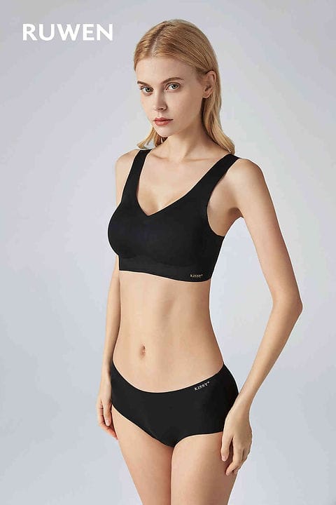 RUWEN Black Seamless Underwear and Bra Set.